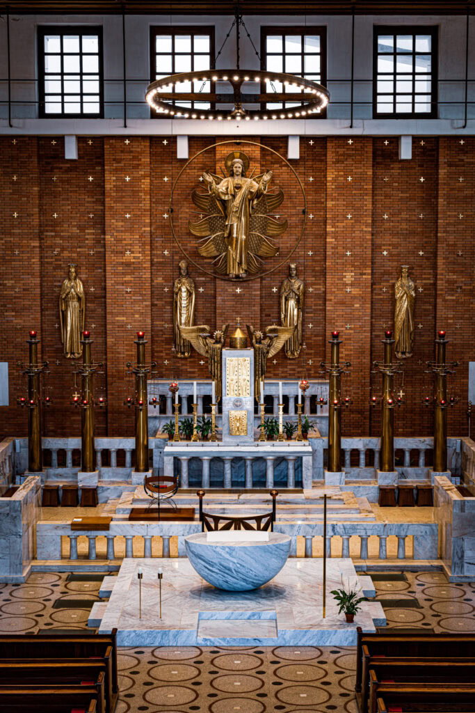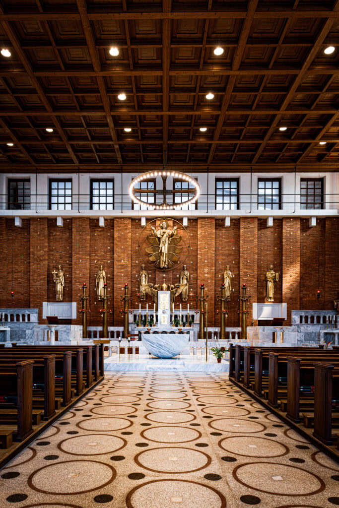 Vai entrar numa ampla nave, sem a tradicional divisão entre a nave e o presbitério, e subir até à torre e ao campanário. Vai espreitar a cripta e outros espaços escondidos e verá também o novo altar do arquiteto Josef Pleskot, que simbolicamente constitui o coração contemporâneo de toda a igreja.